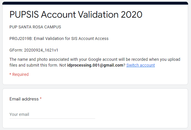 1. Kung nakapag fill out na po sa google form, hintayin lang po yung reponse ng admin. Pag wala po response within 2 days po, pwede po kayo mag email sa pupsantarosa@gmail.com para ma-follow up yung request.